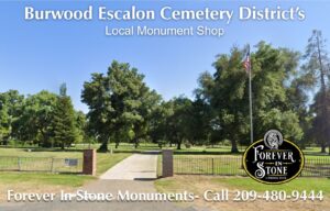 Forever In Stone, Inc. proudly provides custom headstones, granite memorials, and cemetery monuments for Burwood Cemetery, officially known as the Escalon Cemetery District, located at